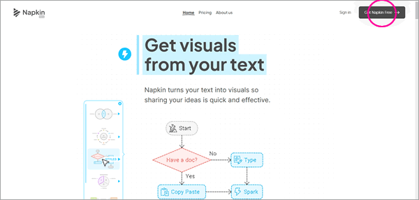 Step1:右上のGet Napkin Freeからアカウントを作成する