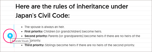 - ブログやニュースレターのテキストを貼り付けると、読者が記憶に残りやすく、シェアしたくなるようなビジュアルを生成できます。