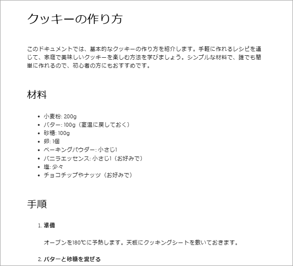 今回は日本語で「クッキーの作り方」と指示してみた