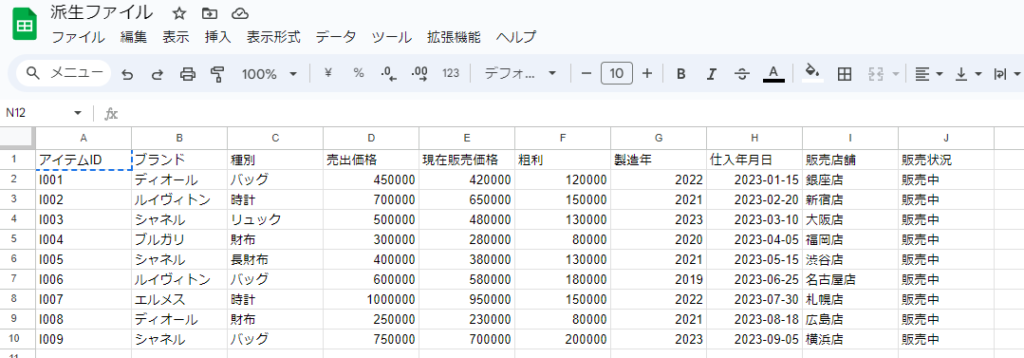 「派生ファイル」というスプレッドシートを作成し、そのA1セルに次のように入力すると、